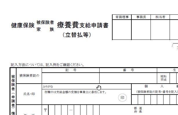 「療養費支給申請書」の記入をし、申し入れをすることで手続きが可能となります。