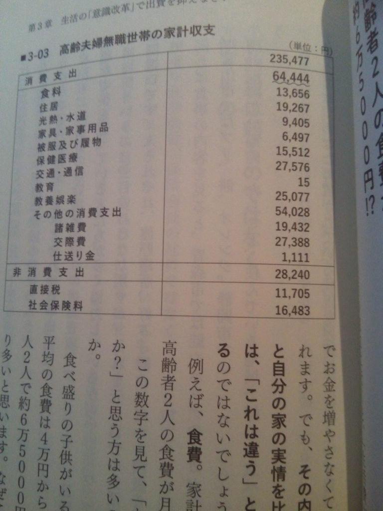一家の家計簿を見ていくような形でいろいろな項目が載っています